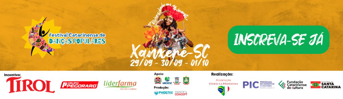 FESTIVAL CATARINENSE E DANÇAS POPULARES - CLASSIFICATÓRIA XANXERÊ - 29,30 de setembro e 01 de outubro de 2023