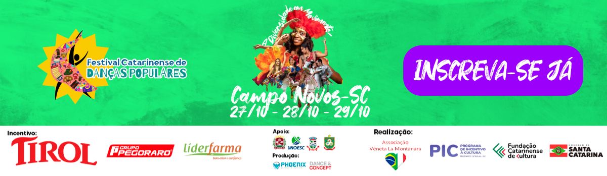 FESTIVAL CATARINENSE DE DANÇAS POPULARES - CLASSIFICATÓRIA CAMPOS NOVOS - 27, 28 e 29 de outubro de 2023
